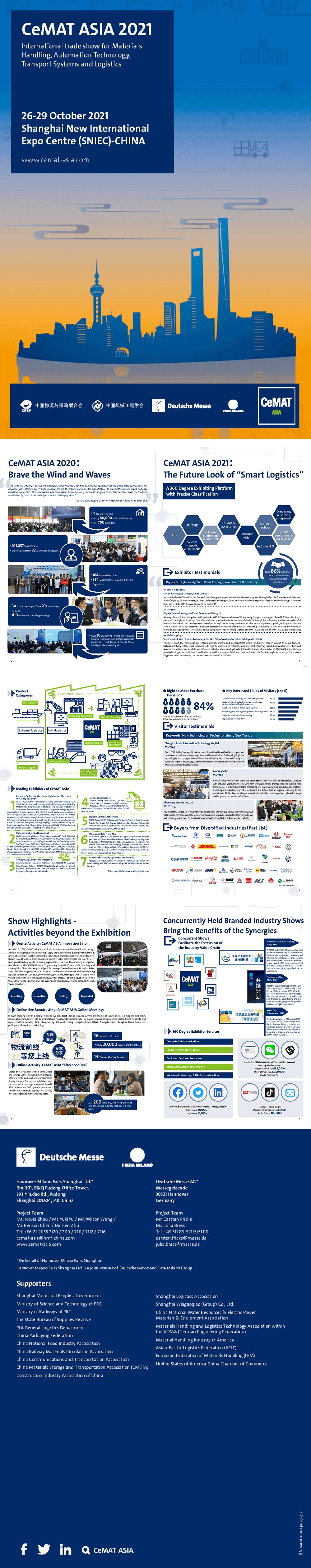 La 22e Exposition internationale sur les technologies logistiques et les systèmes de transport, un événement industriel annuel dans la région Asie-Pacifique, se tiendra au Shanghai New International Expo Center du 26 au 29 octobre 2021. Sous le thème « Smart Logistics », l’exposition présentera les réalisations innovantes de la fabrication intelligente et construira conjointement une grande plateforme industrielle dans divers domaines.